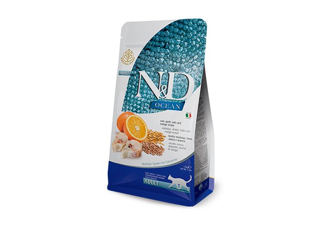 Farmina N&D Ocean Line Adult Condish Spelt Oats Orange Low Grain Сухой Низкозерновой корм Фармина для взрослых кошек Треска с Пшеницей Овсом и Апельсином 5 кг