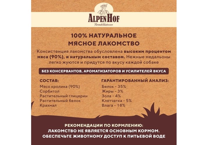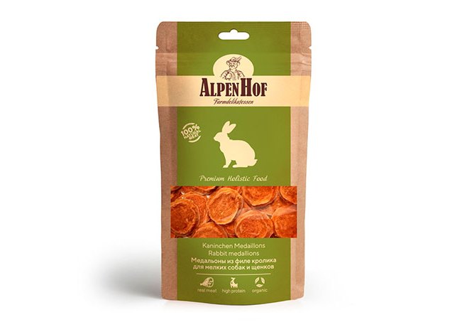 AlpenHof Rabbit medallions Лакомство Альпенхоф для Щенков и Мелких собак Медальоны из филе Кролика 50 г
