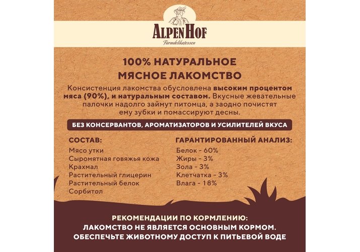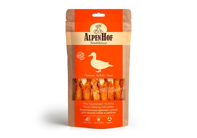 AlpenHof Duck chewing mini sticks Лакомство Альпенхоф для Щенков и Мелких собак Жевательные косточки с Уткой 50 г