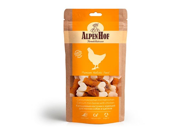 AlpenHof Calcium mini bones with chicken Лакомство Альпенхоф для Щенков и Мелких собак Кальциевые косточки с Курицей 50 г