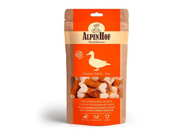 AlpenHof Calcium mini bones with duck Лакомство Альпенхоф для Щенков и Мелких собак с Кальциевые косточки Уткой 50 г