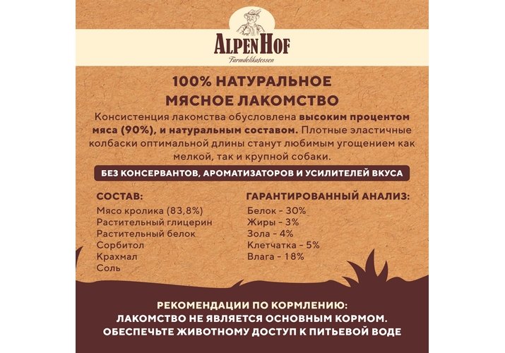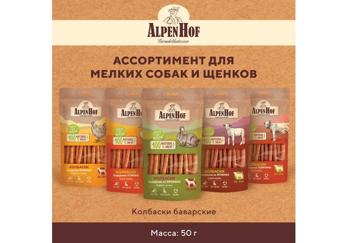 AlpenHof Rabbit sticks Лакомство Альпенхоф для Щенков и Мелких собак Колбаски Баварские из Кролика 50 г