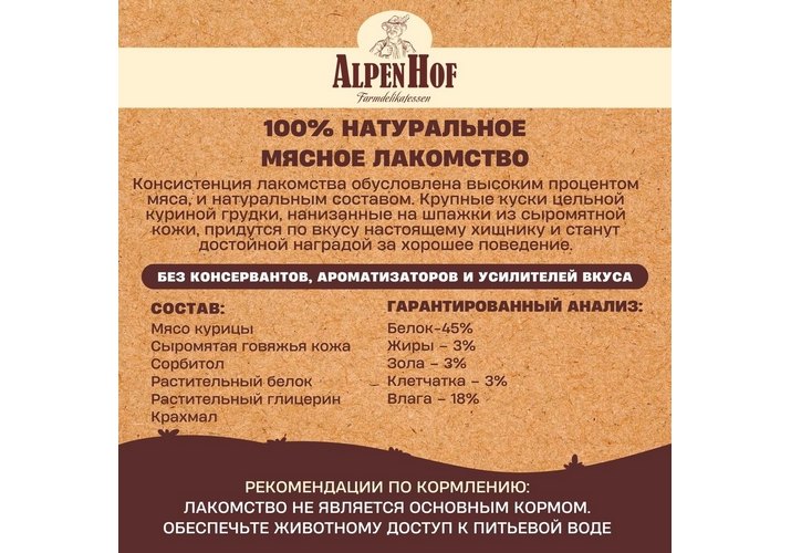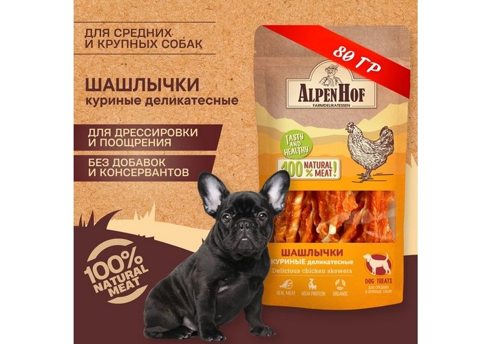 AlpenHof Delicious chicken skewers Лакомство Альпенхоф для Средних и Крупных собак Шашлычки Куриные деликатесные 80 г