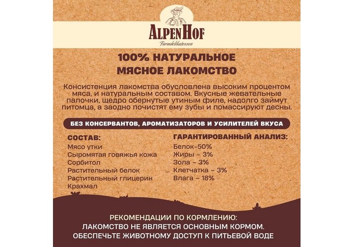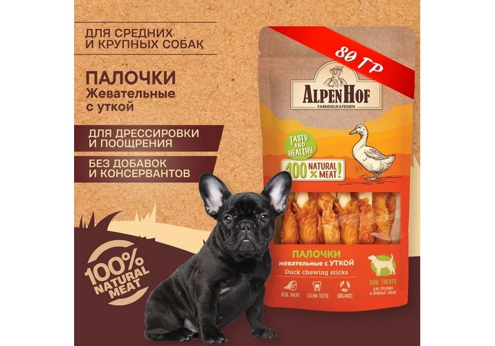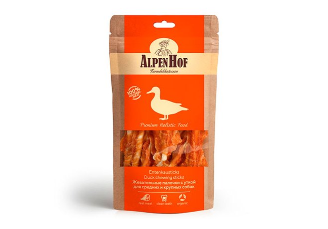 AlpenHof Duck chewing stics Лакомство Альпенхоф для Средних и Крупных собак Жевательные палочки с Уткой 80 г
