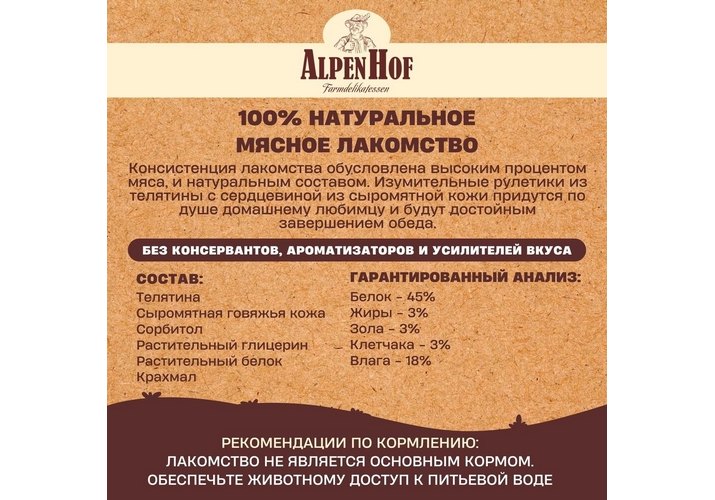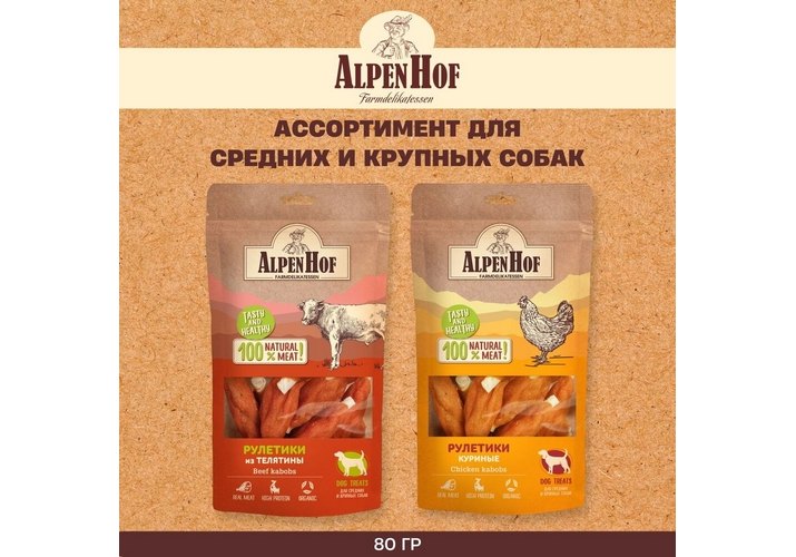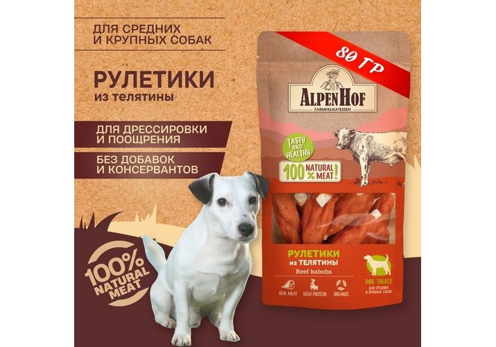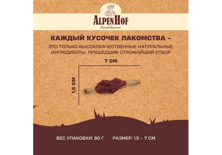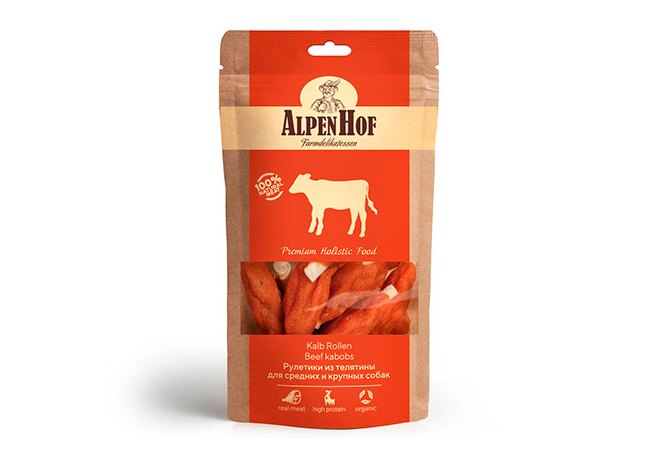 AlpenHof Beef kabobs Лакомство Альпенхоф для Средних и Крупных собак Рулетики из Телятины 80 г