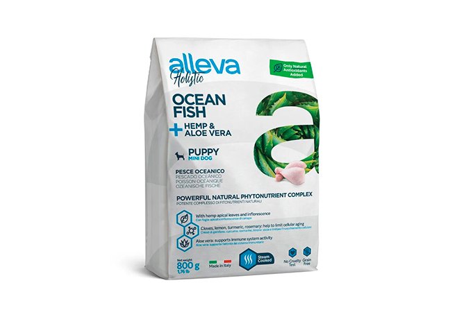 Alleva Holistic Puppy Mini Ocean Fish & Hemp Aloe vera Сухой корм Аллева для Щенков Мелких пород Океаническая рыба Алоэ вера Конопля 800 г