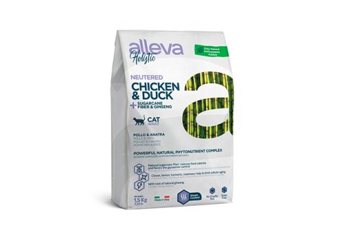 Alleva Holistic Neutered Adult Chicken Duck & Sugarcane fiber Ginseng Сухой корм Аллева для Стерилизованных кошек и кастрированных котов Курица Утка волокна Сахарного тростника Женьшень 1,5 кг