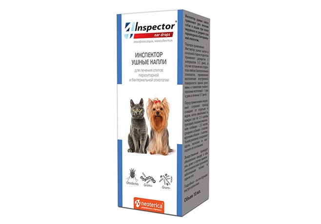 Inspector Ear Drops Ушные капли Инспектор для собак и кошек для лечения Отитов 10 мл