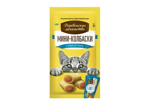 Деревенские лакомства Мини-колбаски для кошек с пюре из Тунца 10г х 4шт