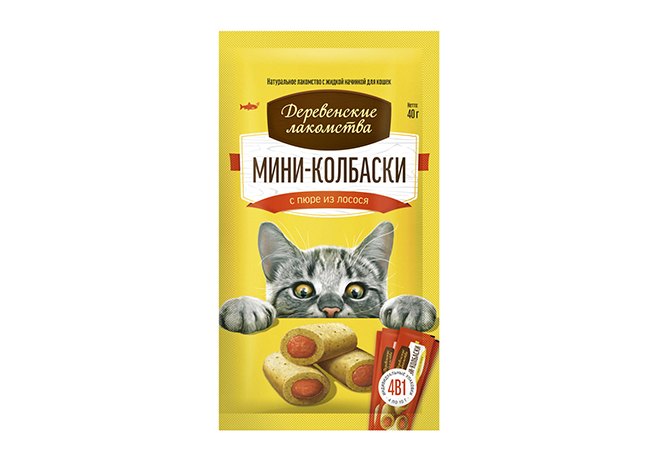 Деревенские лакомства Мини-колбаски для кошек с пюре из Лосося 10г х 4шт