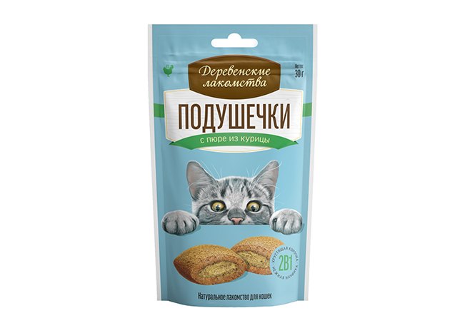 Деревенские лакомства Подушечки для кошек с пюре из Курицы 30 г
