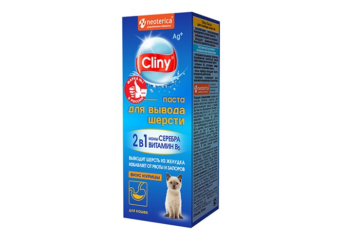 Cliny Паста Клини с ионами Серебра и витамином В5 для кошек для Вывода Шерсти со вкусом Курицы 30 мл