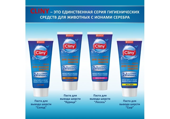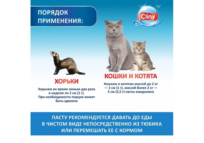 Cliny Паста Клини с ионами Серебра и витамином В5 для кошек для Вывода Шерсти со вкусом Курицы 75 мл