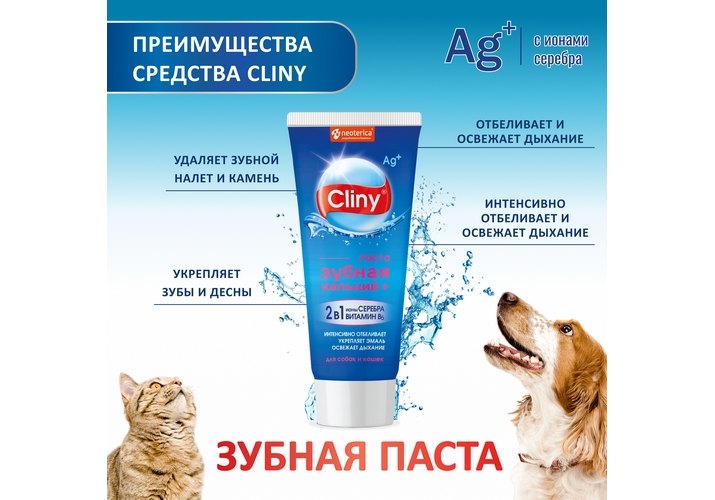 Cliny Зубная паста Клини Кальций+ для собак и кошек 75 мл