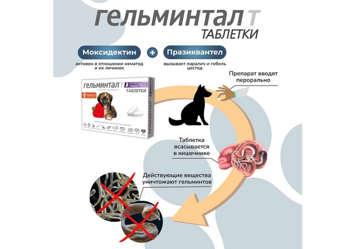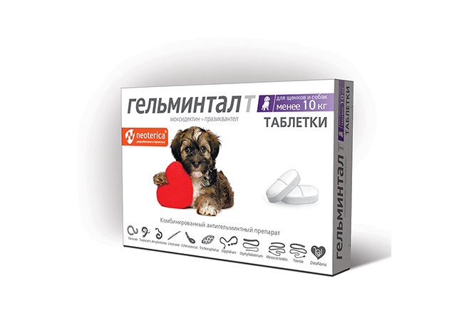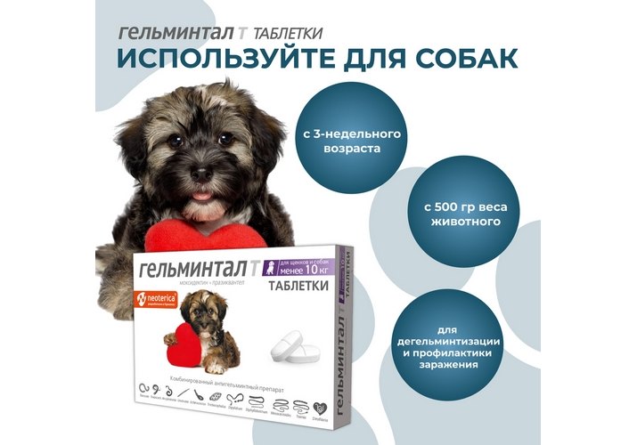 Гельминтал Т Таблетки от Гельминтов для Щенков и собак весом до 10 кг 1 х 2 шт
