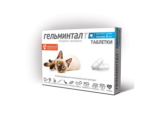 Гельминтал Т Таблетки от Гельминтов для Котят и кошек весом до 4 кг 1 х 2 шт