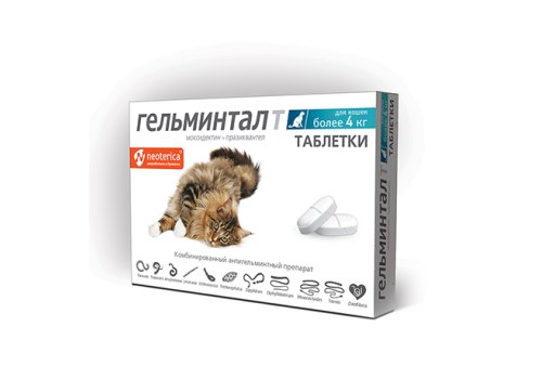 Гельминтал Т Таблетки от Гельминтов для Котят и кошек весом более 4 кг 1 х 2 шт