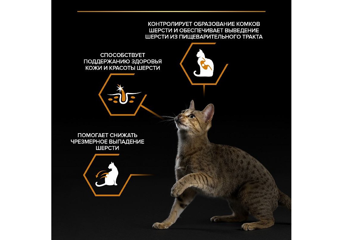 • Благодаря особому питательному и витаминно-минеральному составу влажный корм для кошек помогает снизить чрезмерное выпадение шерсти