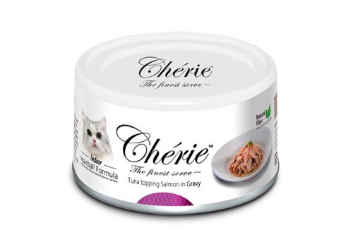 Pettric Cherie Hairball Control Tuna topping Salmon in gravy Беззерновые консервы Петрик для кошек Тунец с лососем в подливе (цена за упаковку) 80г х 24шт