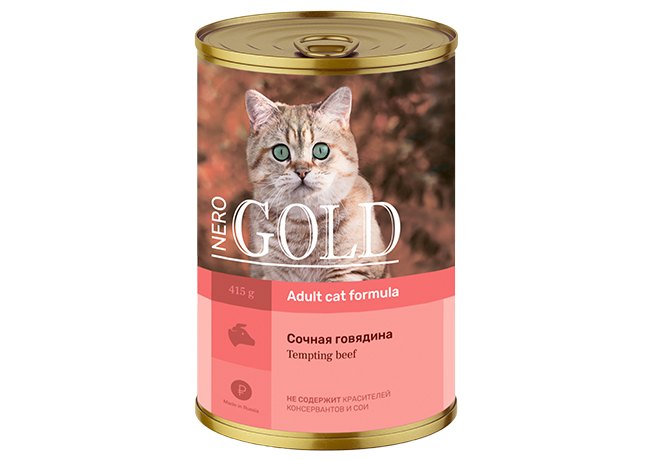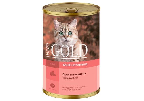 NERO GOLD Adult Tempting Beef Консервы Hеро Голд для кошек сочная Говядина (цена за упаковку) 415г х 12шт