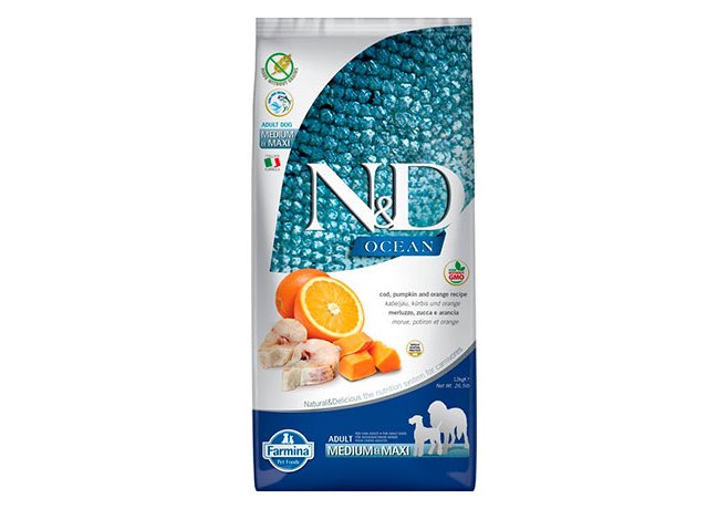 Farmina N&D Ocean Line Adult Medium Maxi Herring & Orange Grain free Сухой Беззерновой корм Фармина для взрослых собак Средних и Крупных пород Сельдь с Апельсином 12 кг