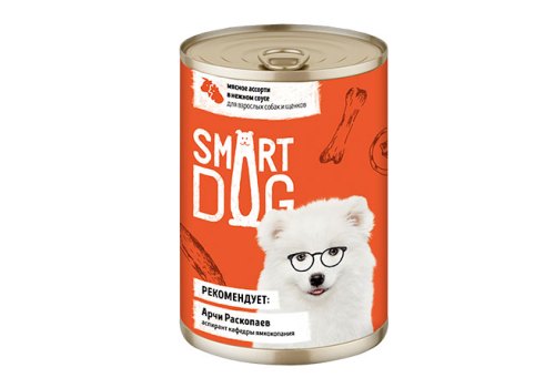 Smart Dog Консервы Смарт Дог для взрослых собак и щенков Мясное ассорти в нежном соусе (цена за упаковку) 400г х 9шт
