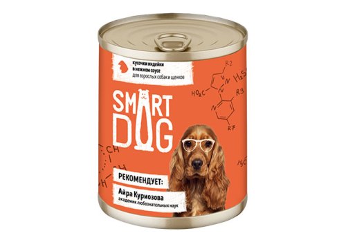 Smart Dog Консервы Смарт Дог для взрослых собак и щенков Кусочки Индейки в нежном соусе (цена за упаковку) 240г х 12шт