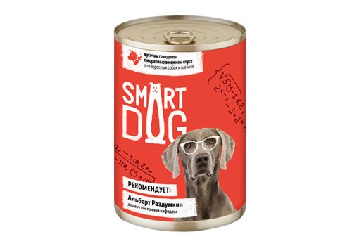Smart Dog Консервы Смарт Дог для взрослых собак и щенков Кусочки Говядины с морковью в нежном соусе (цена за упаковку) 400г х 9шт