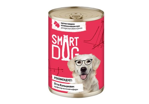 Smart Dog Консервы Смарт Дог для взрослых собак и щенков Кусочки Говядины и ягненка в нежном соусе (цена за упаковку) 400г х 9шт