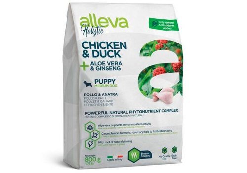 Alleva Holistic Puppy Medium Chicken Duck & Aloe vera Ginseng Сухой корм Аллева для Щенков Средних пород Курица Утка Алоэ вера Женьшень 800 г