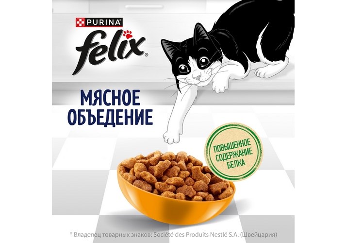 • Сухой корм для кошек FELIX® содержит повышенное содержание белка