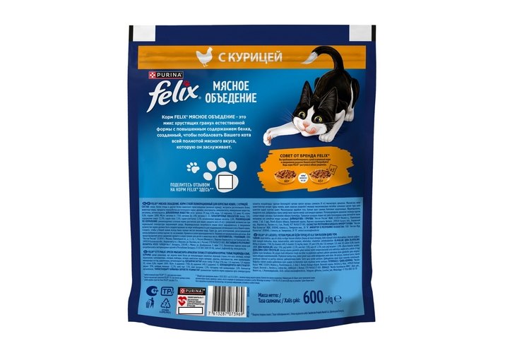 FELIX МЯСНОЕ ОБЪЕДЕНИЕ Сухой корм Пурина Феликс Мясное объедение для взрослых кошек с курицей 600 г