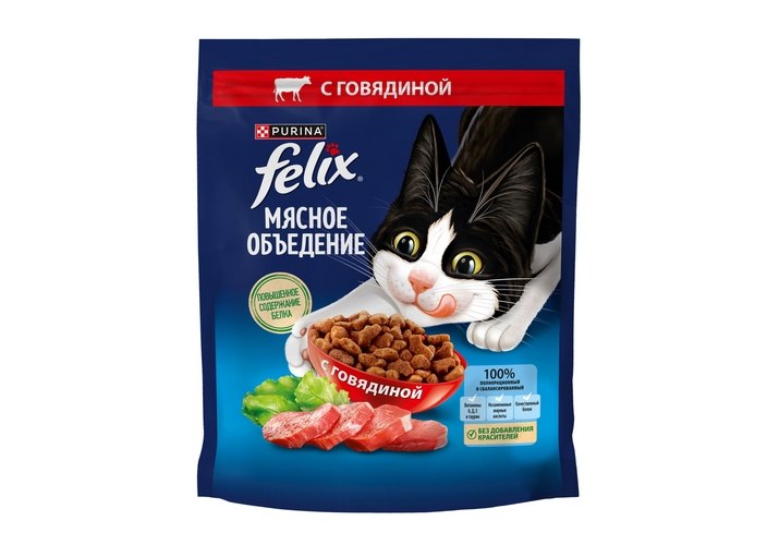 FELIX МЯСНОЕ ОБЪЕДЕНИЕ Сухой корм Пурина Феликс Мясное объедение для взрослых кошек с говядиной 600 г