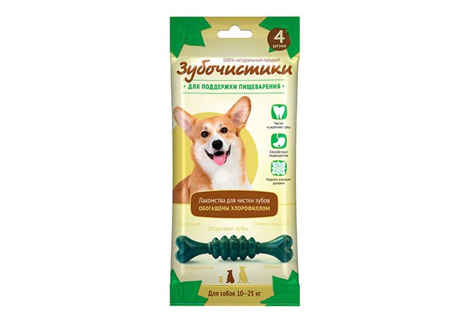 Зубочистики Лакомство для собак 10 - 25 кг для Поддержки пищеварения с Хлорофиллом и мятой 70 г