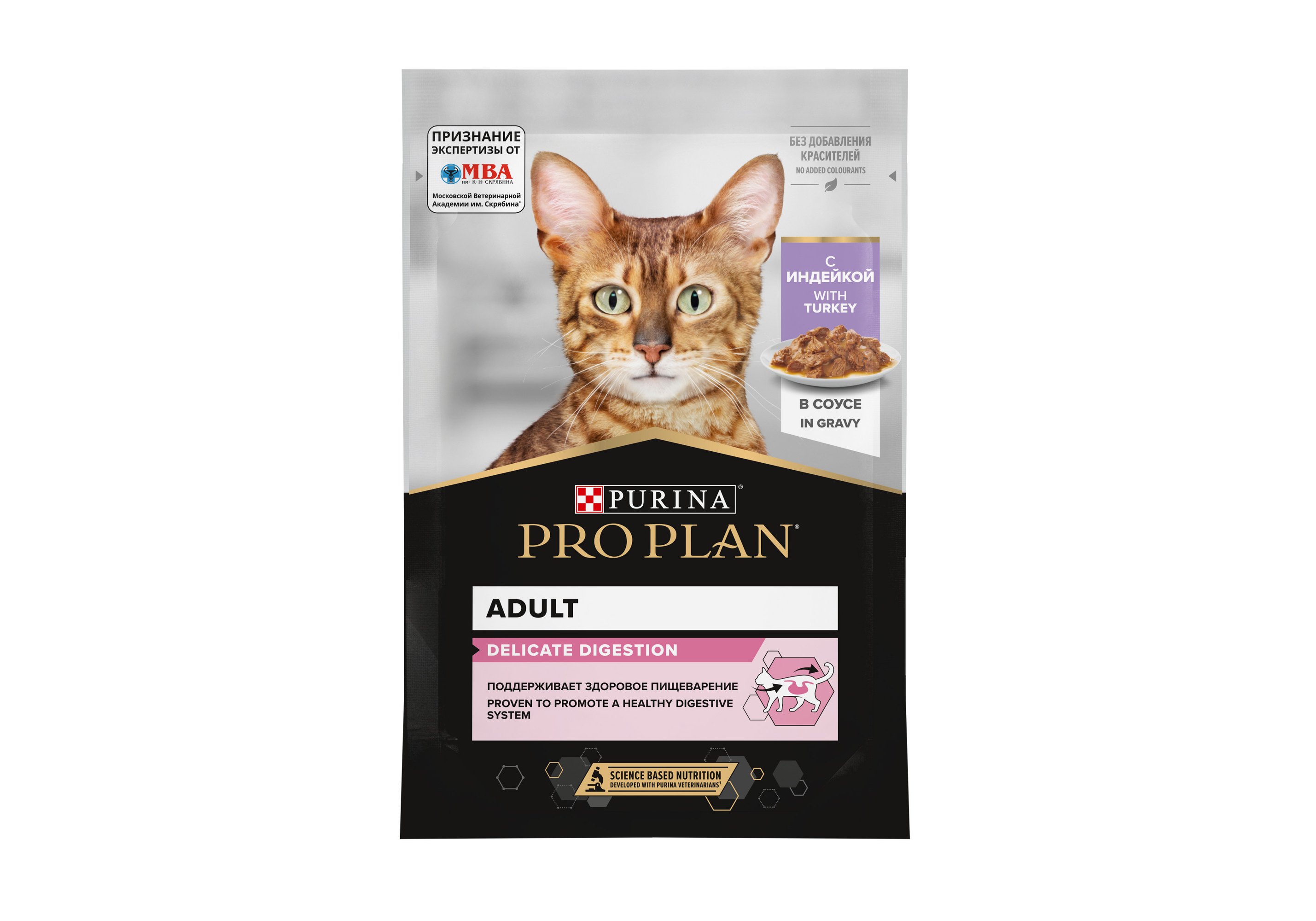 Команда квалифицированных ветеринарных специалистов разработала влажный корм PURINA® PRO PLAN® DELICATE DIGESTION для взрослых кошек с чувствительным пищеварением. Этот полнорационный корм для кошек с индейкой легко усваивается и подходит для повседневного кормления питомцев с проблемами пищеварения.