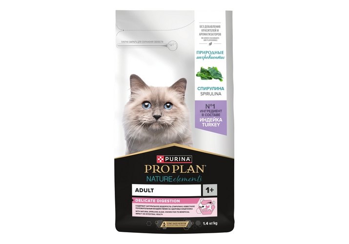 PRO PLAN NATURE ELEMENTS Сухой корм ПРО ПЛАН для взрослых кошек при чувствительном пищеварении с индейкой 1,4 кг