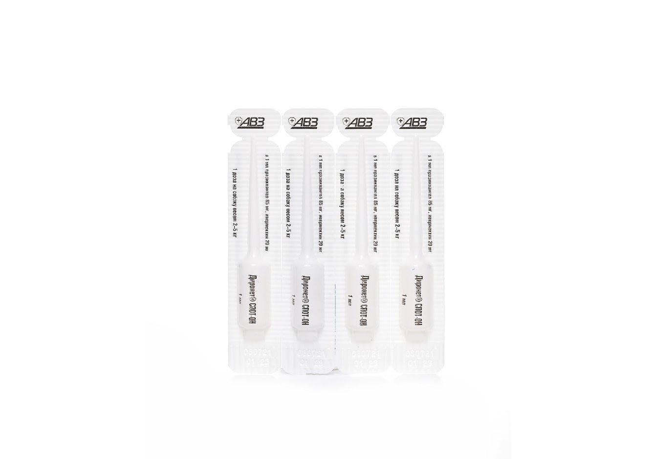 Среди препаратов АВЗ особой популярностью пользуются различные средства от блох и клещей. Разные дозировки препарата рассчитаны на разный вес животных. Средства эффективны и безопасны.