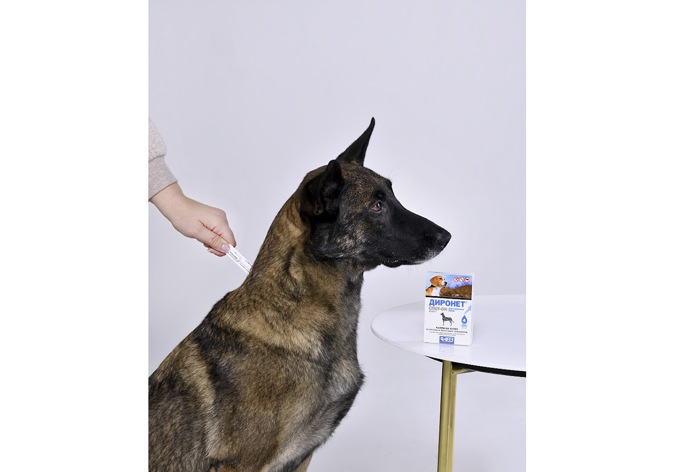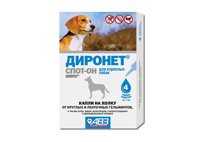 АгроВетЗащита Диронет Спот-он Капли для собак на холку от круглых и ленточных Гельминтов Блох Вшей и Клещей 4 х 1 мл