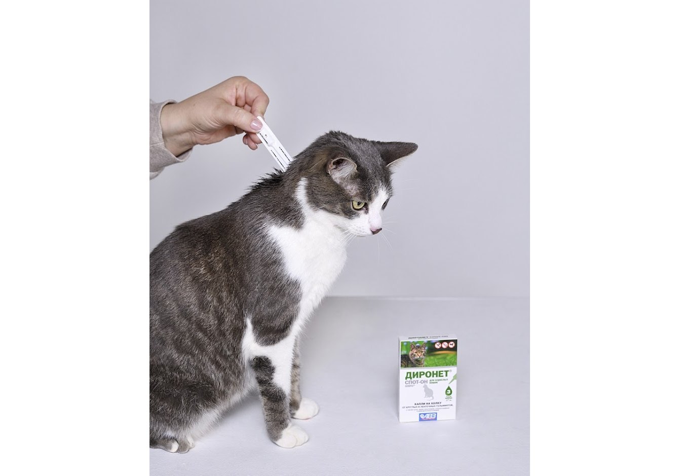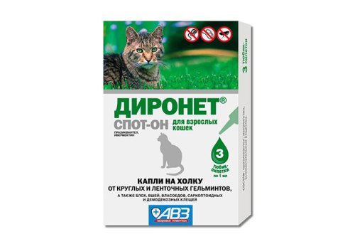 АгроВетЗащита Диронет Спот-он Капли для кошек на холку от круглых и ленточных Гельминтов Блох Вшей и Клещей 3 х 1 мл