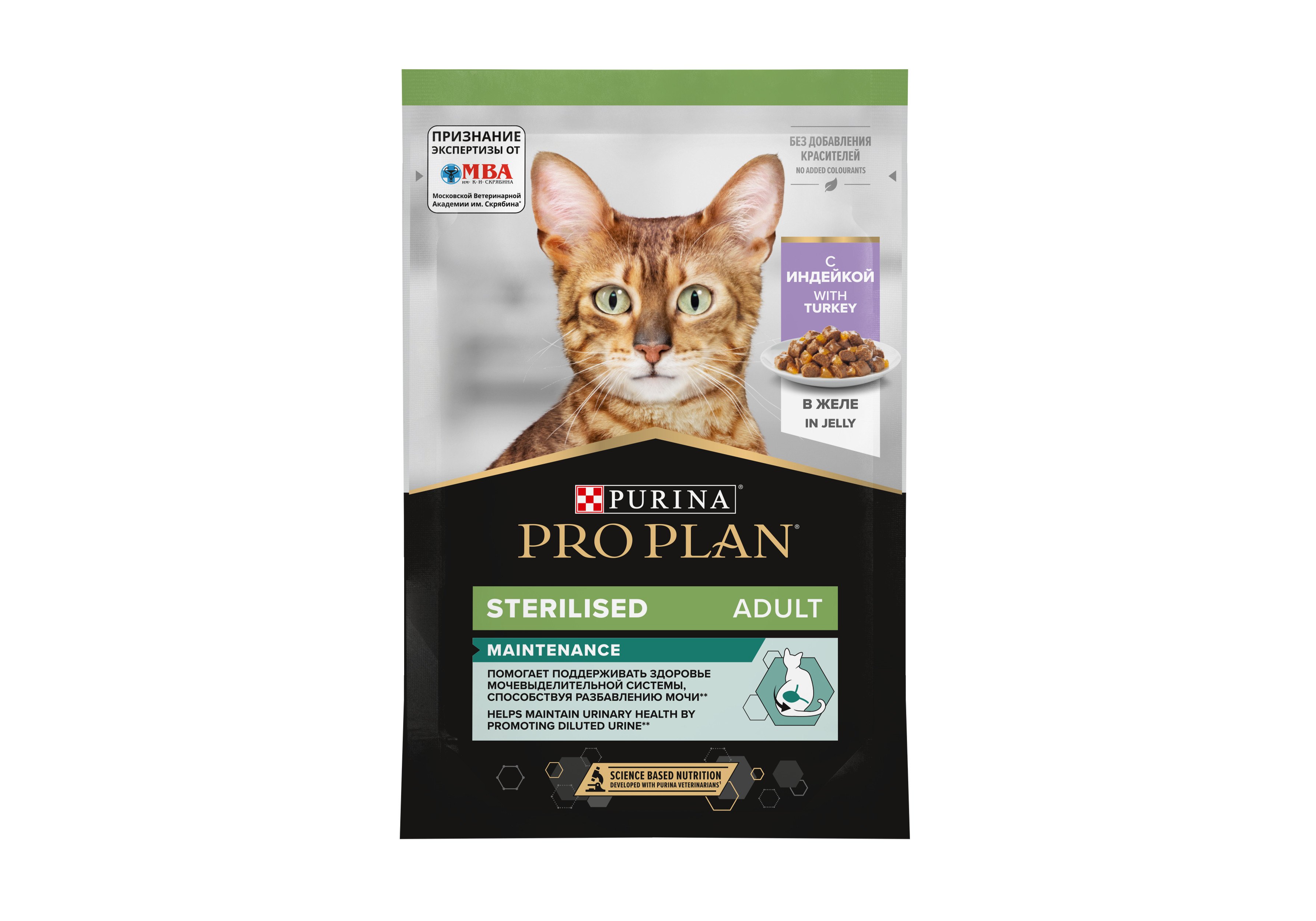 PRO PLAN STERILISED Влажный корм Паучи ПРО ПЛАН для взрослых стерилизованных кошек с индейкой в желе (цена за упаковку) 85г х 26шт