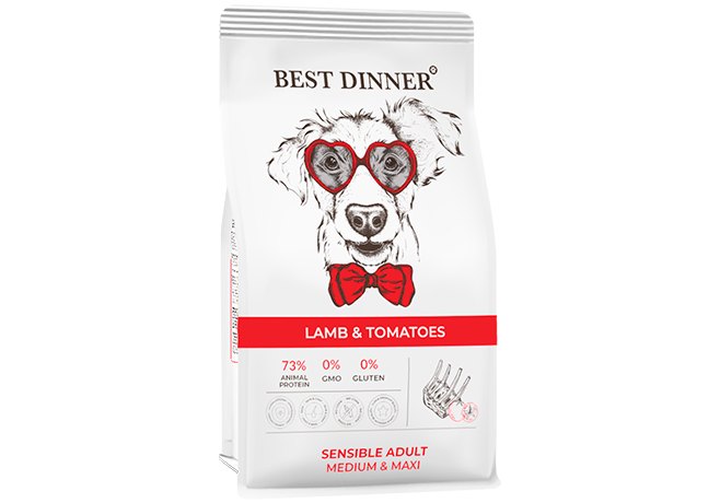 Best Dinner Sensible Adult Dog Medium & Maxi Lamb & Tomatoes Сухой корм Бест Диннер для взрослых собак Средних и Крупных пород Ягненок томат 15 кг