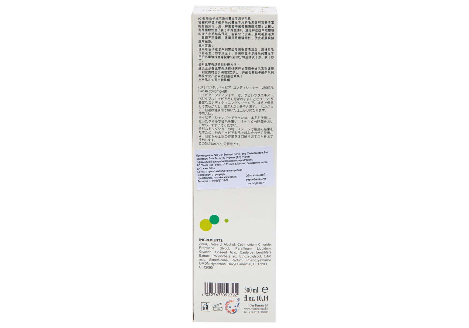 Нанести бальзам-кондиционер "Зеленая икра" на влажную шерсть, вымытую шампунем "Зеленая икра". Оставить на 5-10 минут, смыть и высушить. Подготовка к выставке: для получения отличных результатов в ринге рекомендуется начать применение как минимум за 45 дней до выставки и повторить 3 раза в сочетании с другими продуктами линии ISB Green Caviar. Биоразлагаемость данного средства 90%.