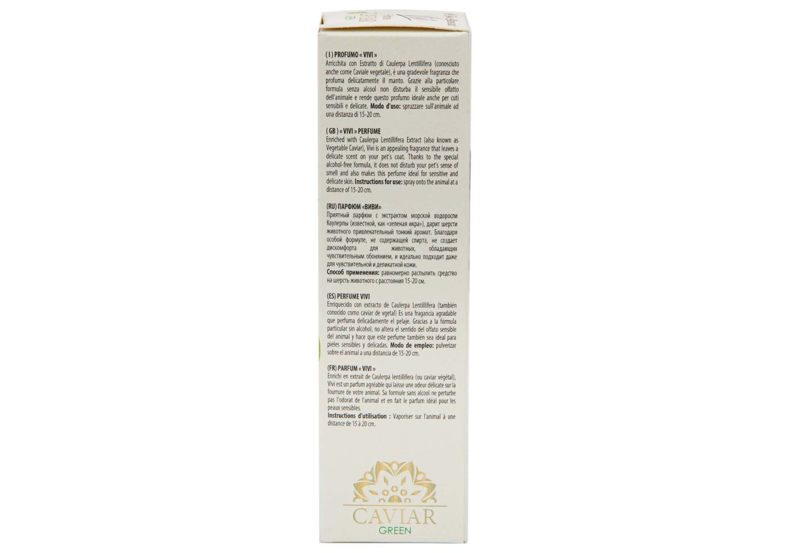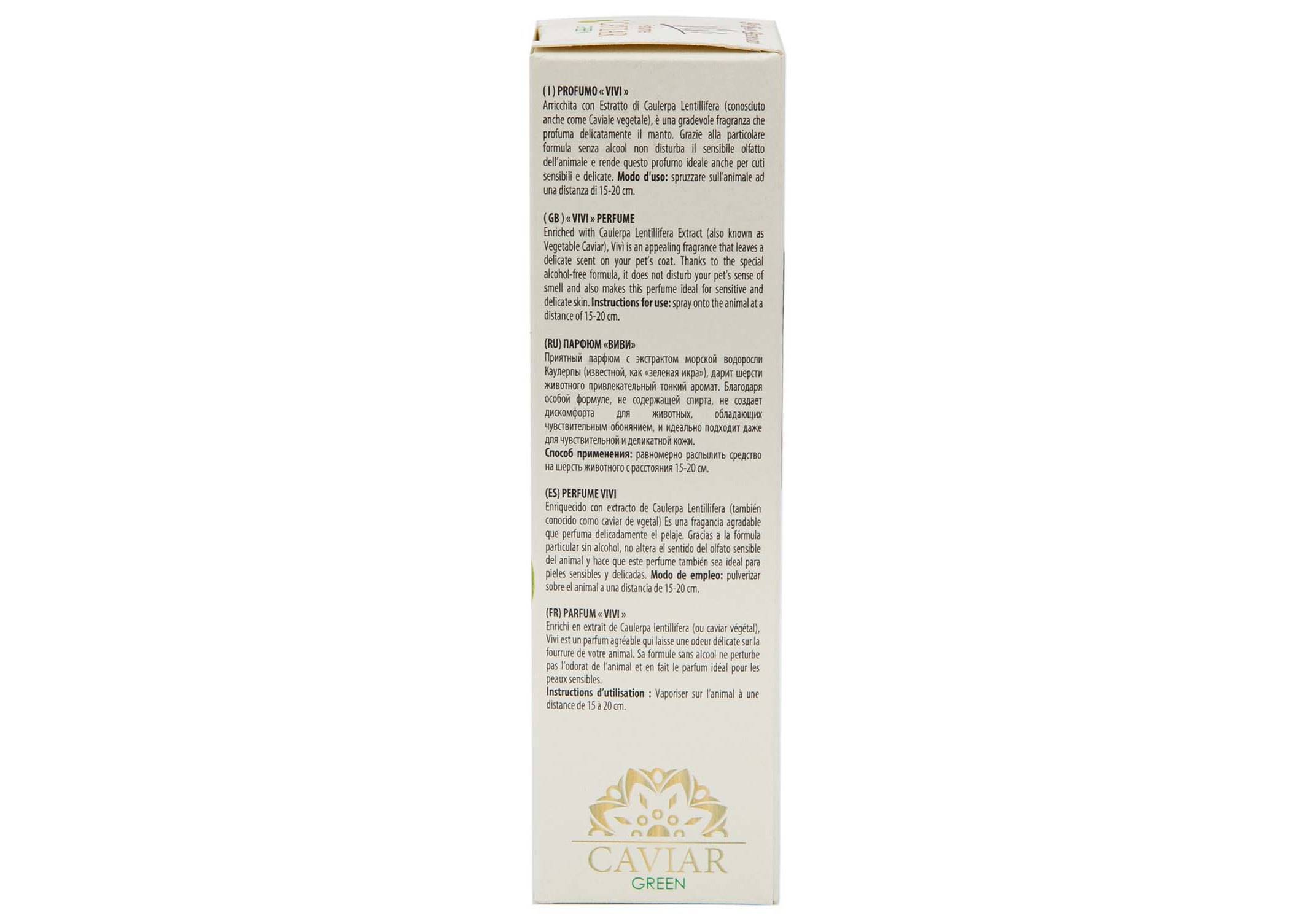 Приятный парфюм с экстрактом морской водоросли Каулерпы (известной, как «зеленая икра»), дарит шерсти животного привлекательный тонкий аромат. Благодаря особой формуле, не содержащей спирта, не создает дискомфорта для животных, обладающих чувствительным обонянием, и идеально подходит даже для чувствительной и деликатной кожи.