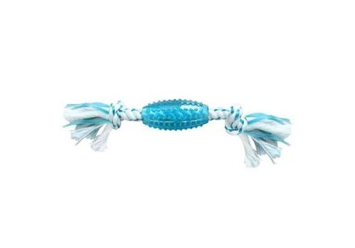 Canine Clean Игрушка Канин Клин для собак Регби Синтетическая резина с Канатом 25 см с ароматом Мяты Голубая