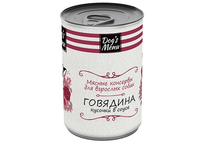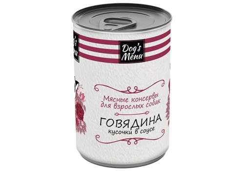 //Dogs menu/Влажный корм для взрослых собак/Со вкусом говядина/Dogs Menu / Консервы Догс Меню для взрослых собак с Говядиной кусочки в соусе (цена за упаковку)