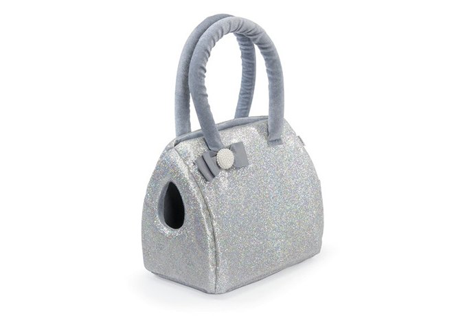 Camon Borsa Silver Glitter bag Сумка-переноска Камон для животных с Блестками и Бантом Серая 28 х 24 см