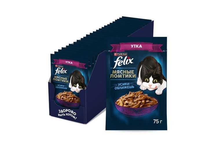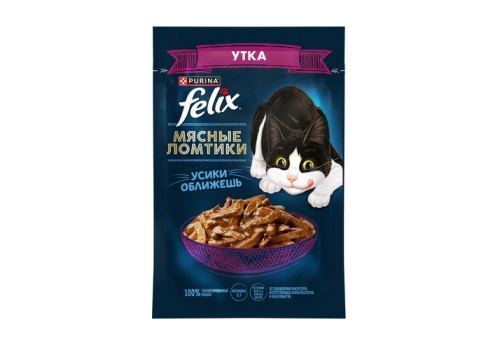 FELIX МЯСНЫЕ ЛОМТИКИ Влажный корм Паучи Пурина Феликс Мясные ломтики для взрослых кошек с уткой (цена за упаковку) 75г х 26шт