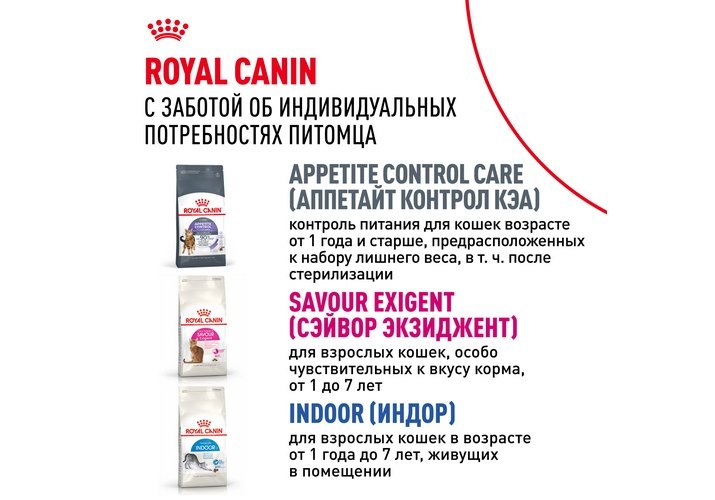 ROYAL CANIN® производит как повседневные, так и ветеринарные диеты для животных, учитывающие индивидуальные потребности кошек и собак.
