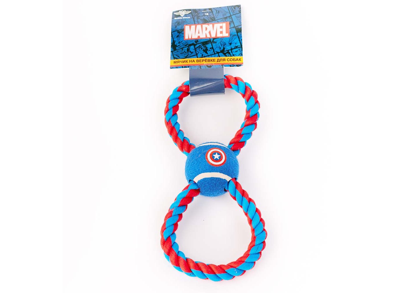 Buckle-Down Мячик на веревке Бакл-Даун для собак Капитан Америка синий 7 х 29 х 12 см