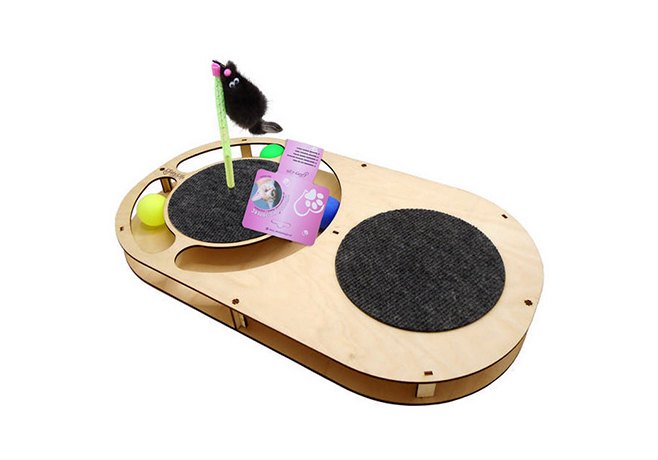 Glory Life Игровой комплекс Глори Лайф для кошек Овал с шариками с площадкой из Ковра c игрушкой на Пружине c Когтеточкой из Ковра 49х27х3,6 см